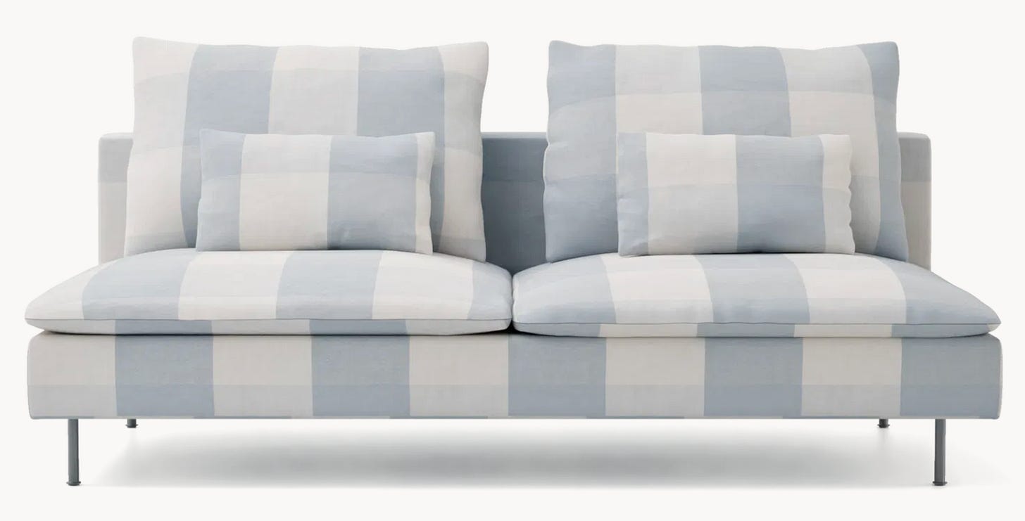 If you’re new to The Reply, my Tuesday design and style advice column, these questions come straight from TikTok, where we’ve been deep in a conversation about colorful, personality-filled sofas for people on a budget. The big question that keeps coming up is where to find affordable options, because sure, if money were no object, you could have a custom sofa made in any fabric you want.