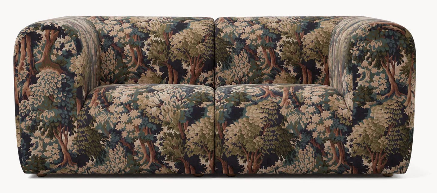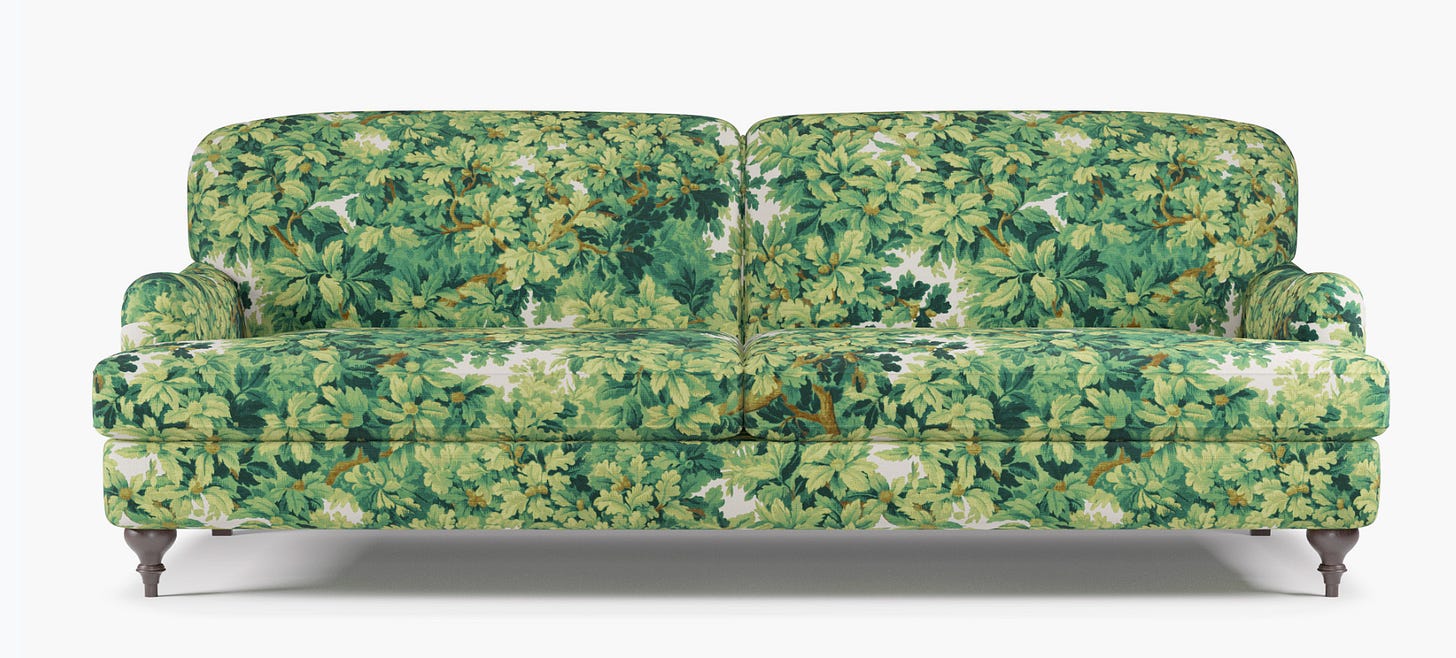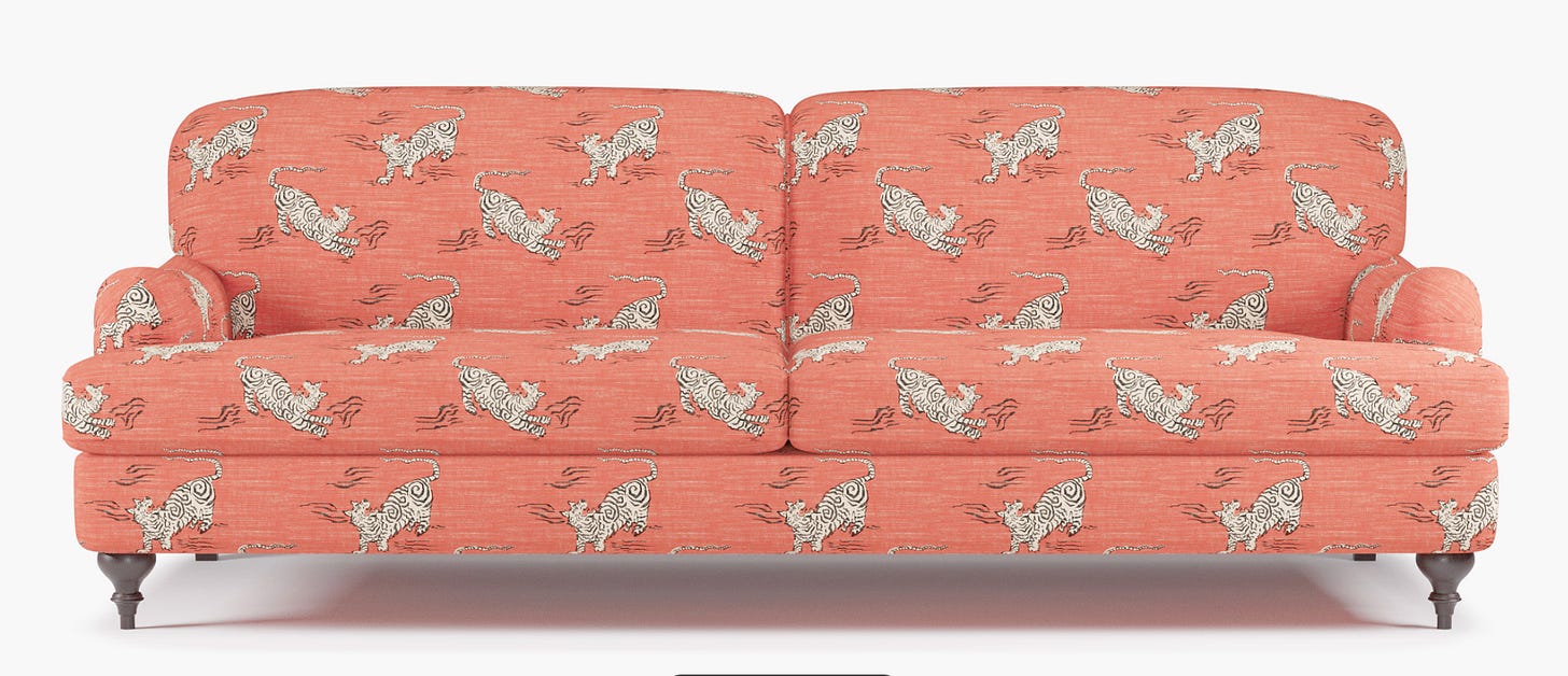 The patterns are plentiful, the price point is reasonable for custom upholstery, and if you want a statement sofa without hunting down a vintage unicorn, this is a very approachable path. I’ve linked a few of my favorite fabrics and pieces below in case you want to order some samples.