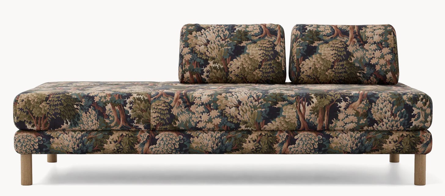 If you want pattern options, The Inside is one of the most fun rabbit holes out there. They have a huge library of fabrics, and you can upholster almost any of their furniture pieces (sofas, chairs, headboards, even drapery) in whatever print you want.